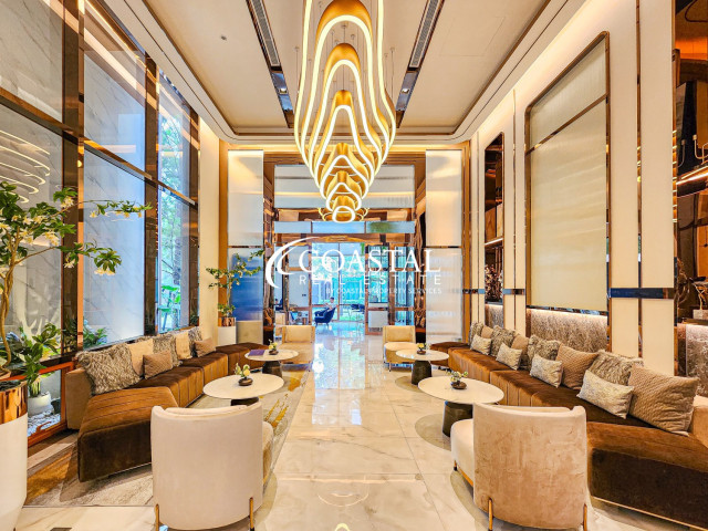 Residents can enjoy a wealth of luxurious amenities, including an infinity edge swimming pool with a jacuzzi and a kids' pool, ensuring relaxation and fun for all ages. The development also features a dedicated kids' playroom, a stylish bar known as the Once More Bar, and a productive workspace at Once Working Space. The grand lobby and semi-outdoor lobby provide a welcoming atmosphere, complemented by a convenient drop-off area. Unwind at the Vanilla Sky Bar or maintain your fitness routine at the Once Sky Gym, all while enjoying breathtaking views from the Cloud Sunken area. Experience a vibrant lifestyle at ONCE PATTAYA, where modern living meets unparalleled amenities.