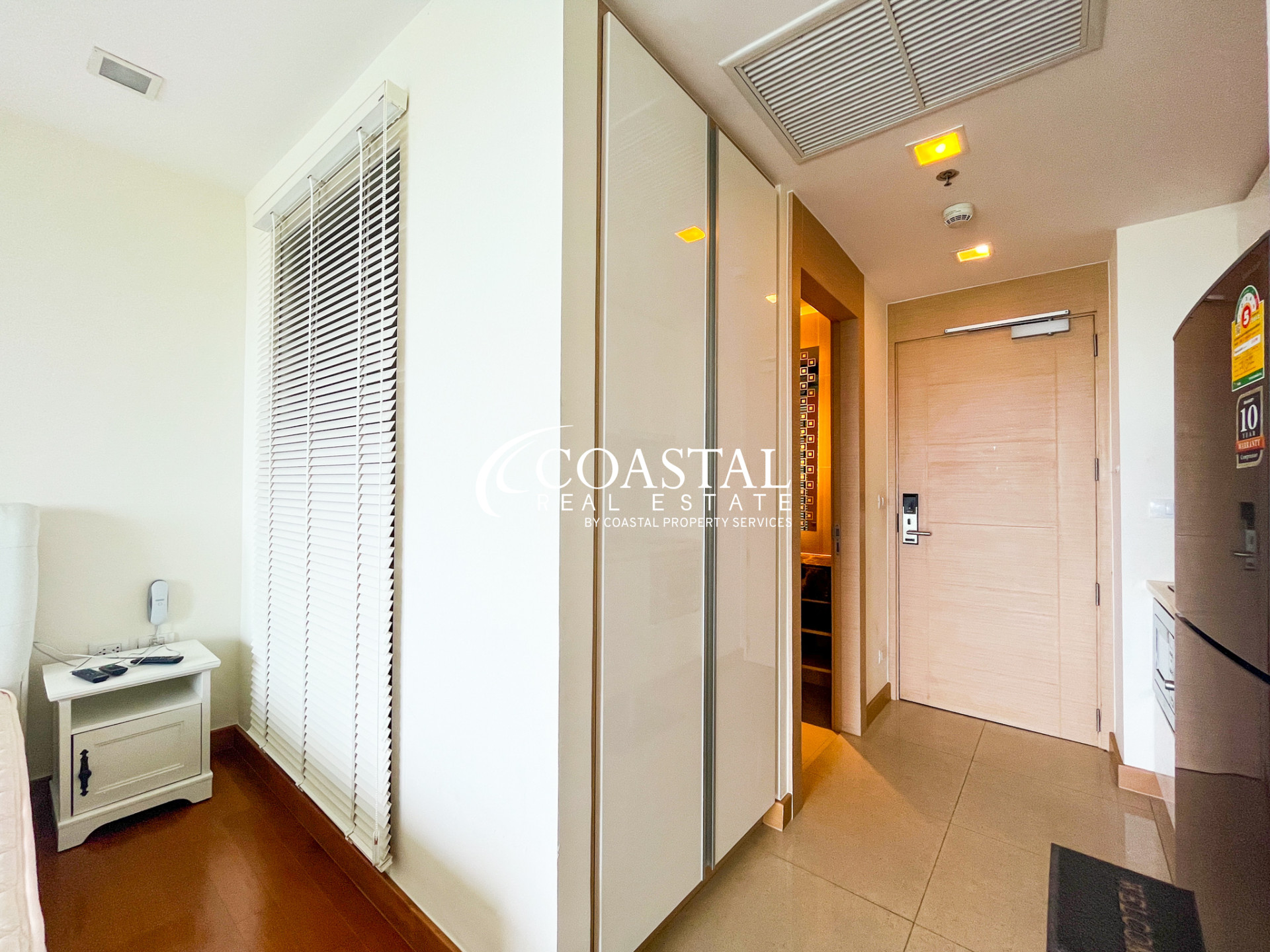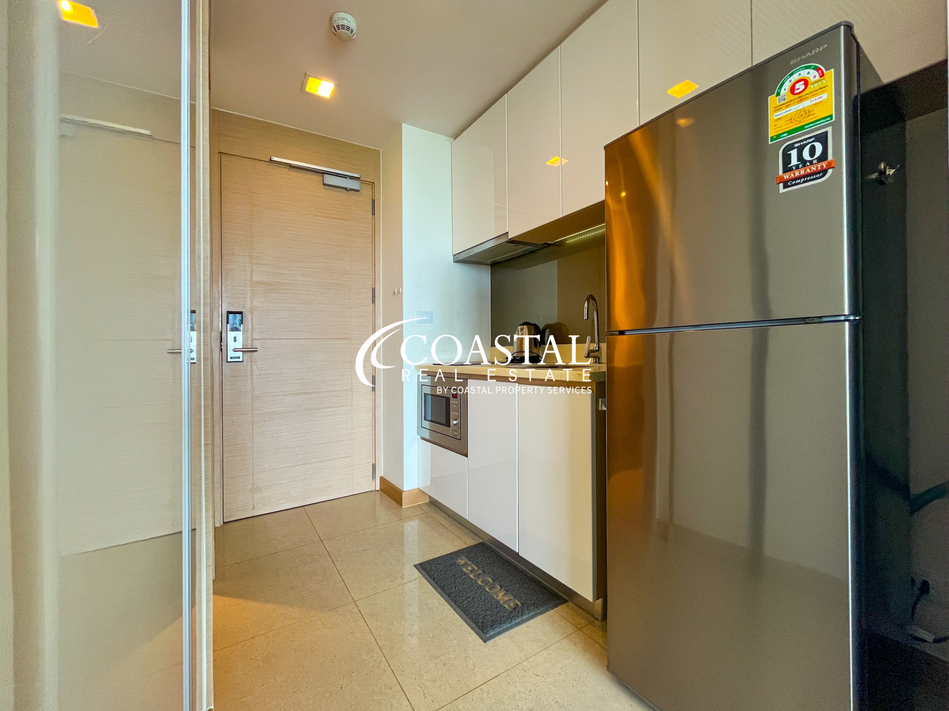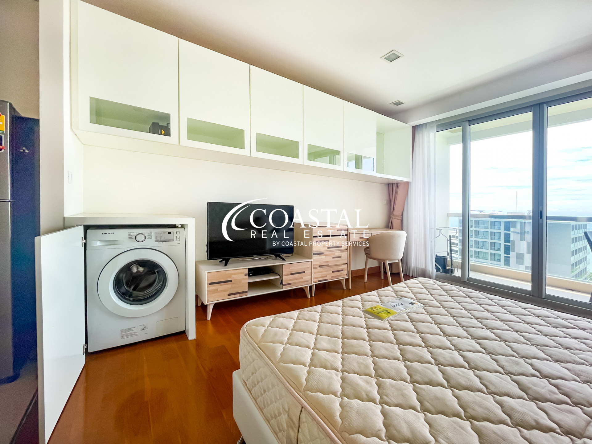 This stunning studio condo at The Palm in Wong Amat offers an exceptional blend of luxury, comfort, and convenience. Spanning 32.93 square meters, this beautifully designed residence features a modern European kitchen, a fully furnished interior, and a sleek bathroom. The unit is equipped with essential amenities such as a washing machine and a private balcony, providing serene views near the iconic Temple of Truth on the ocean side.