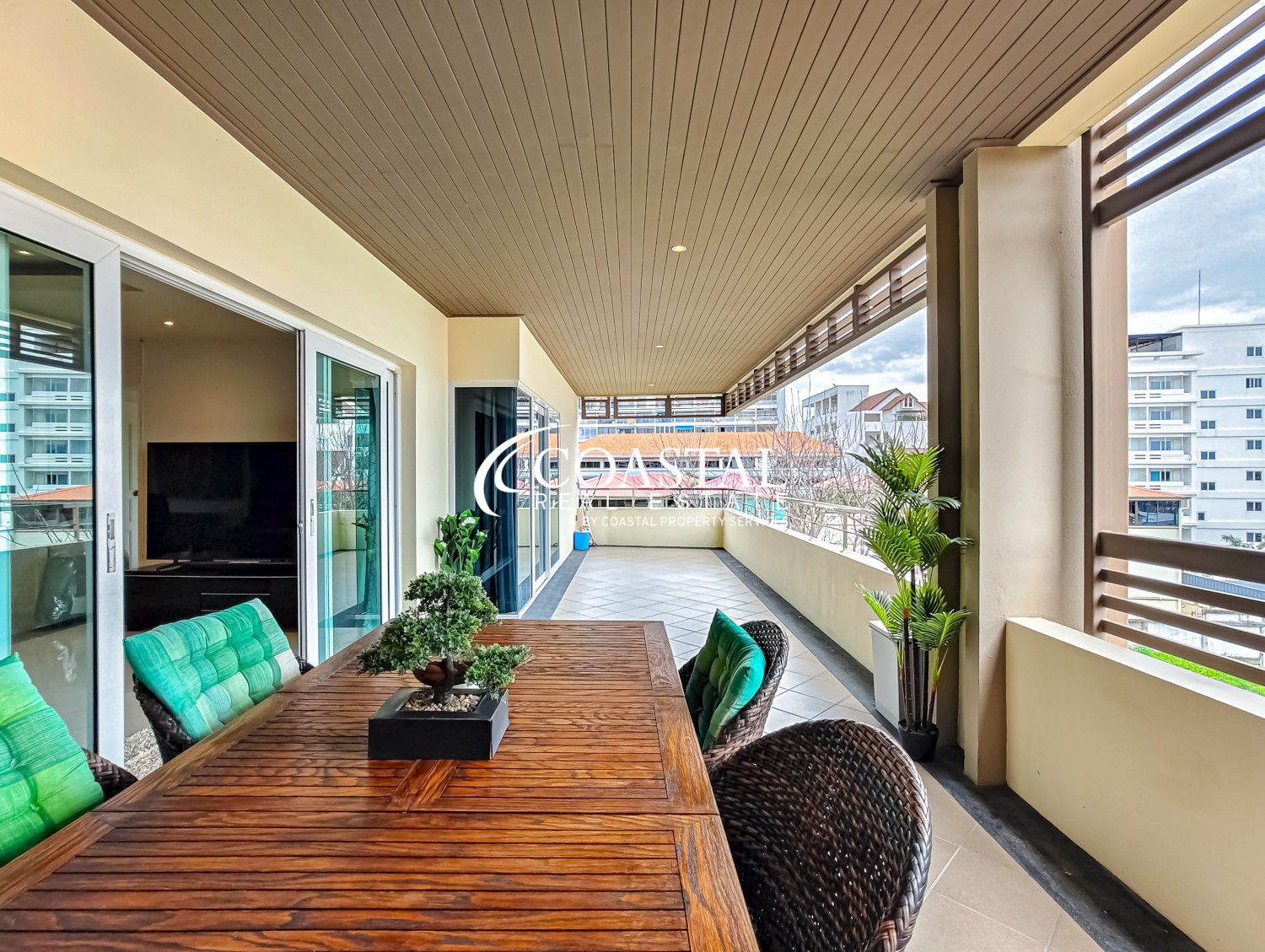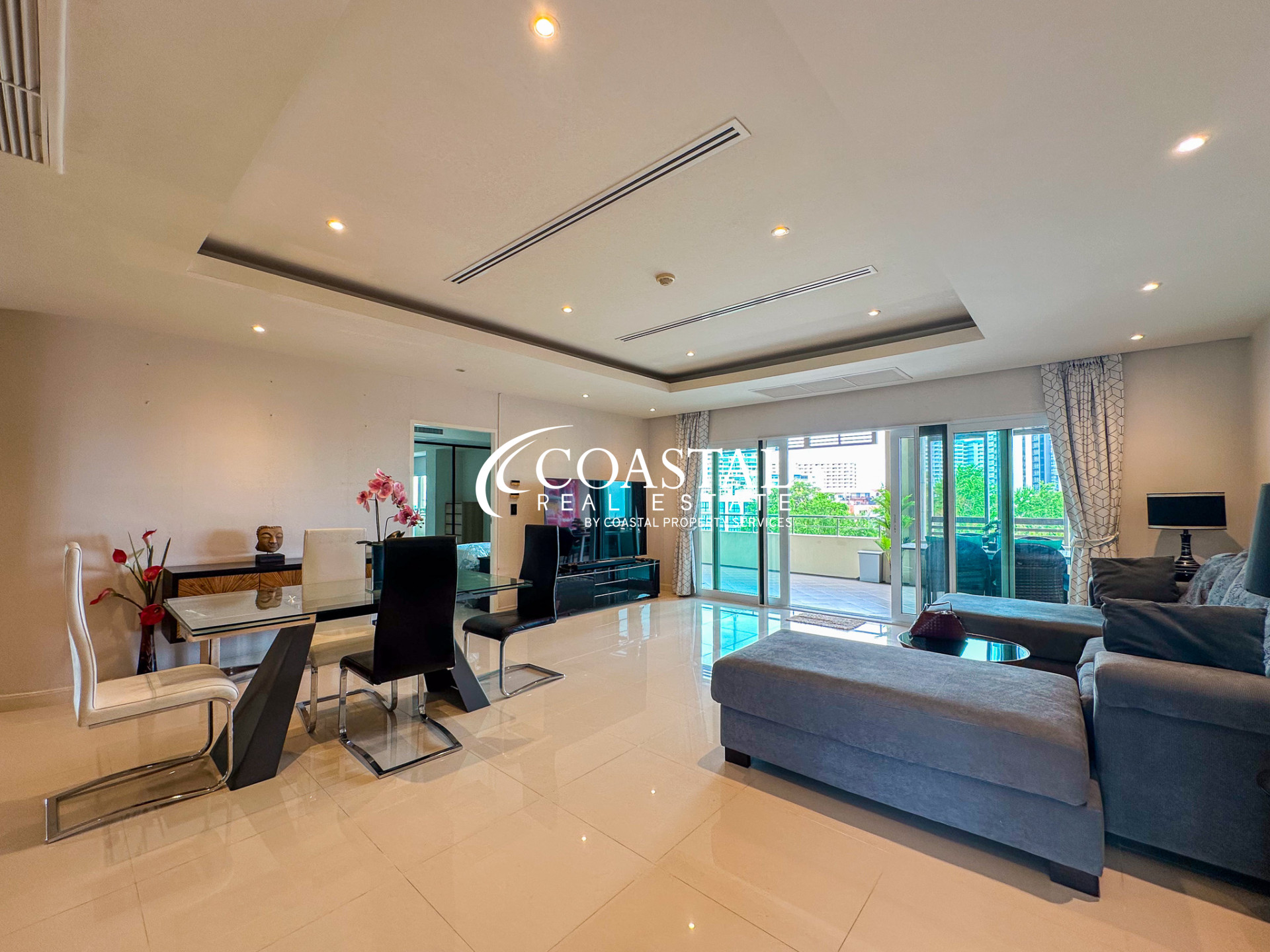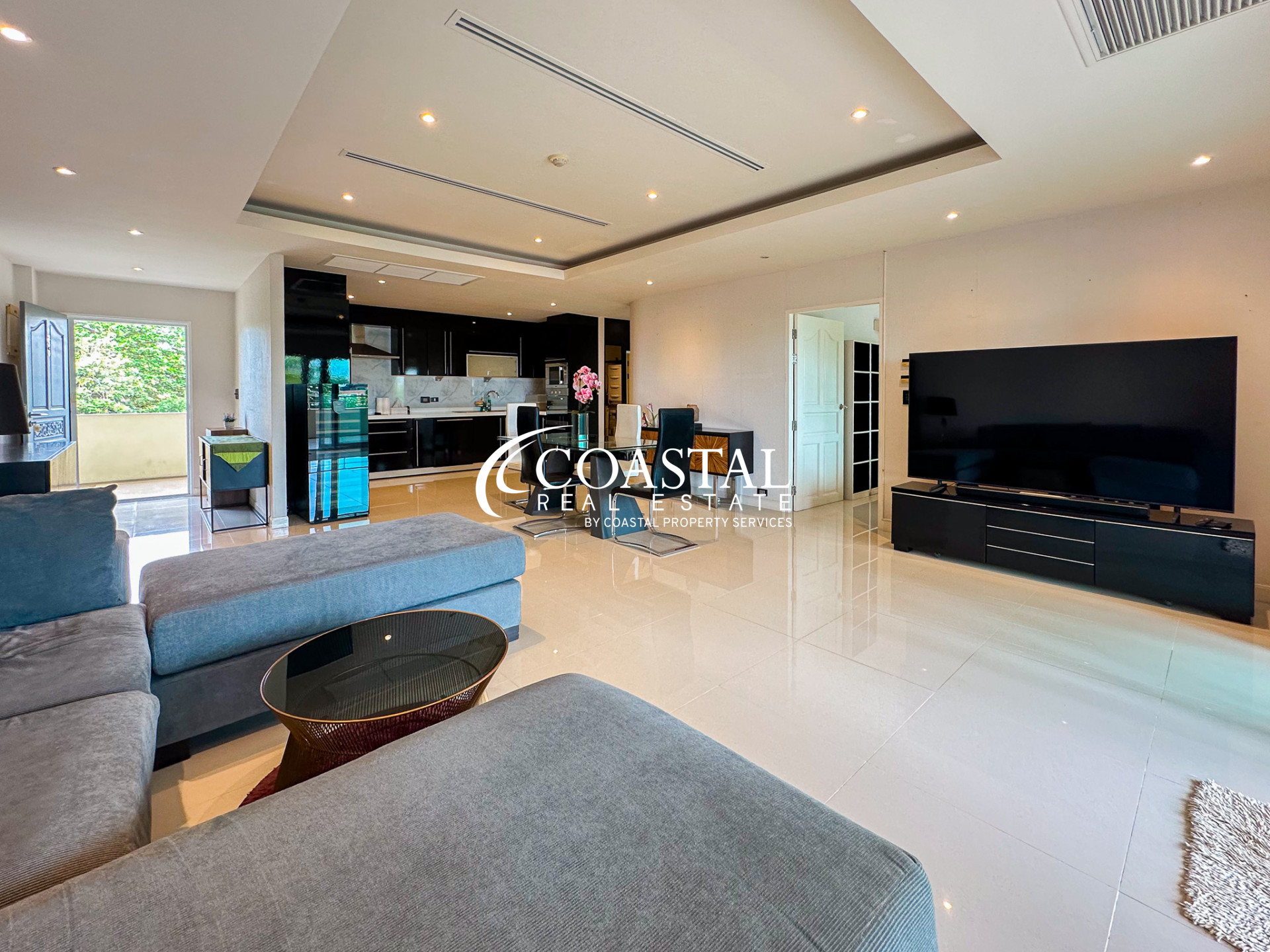 This stylish condo for rent at VN Residence 2 in Pratumnak offers a generous 142.84 square meters of living space, thoughtfully designed for both comfort and convenience. The unit features two spacious bedrooms and two modern bathrooms, along with a fully furnished interior accented by contemporary décor. The European kitchen is well-equipped with an oven, microwave, refrigerator, dishwasher, and washing machine, making it as practical as it is inviting.