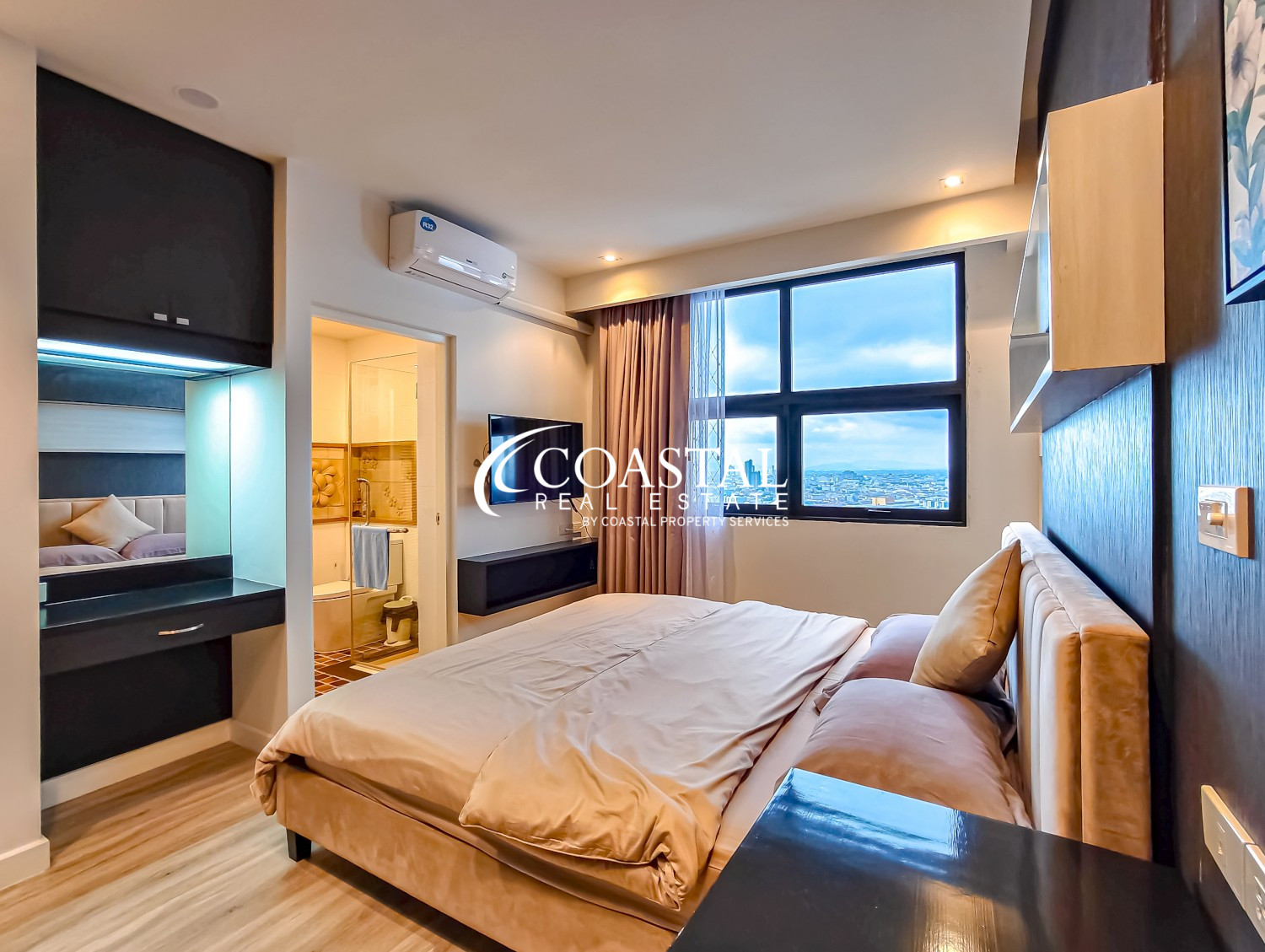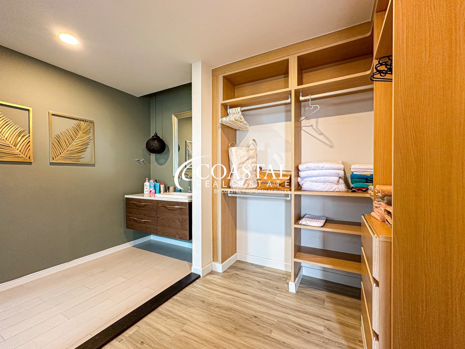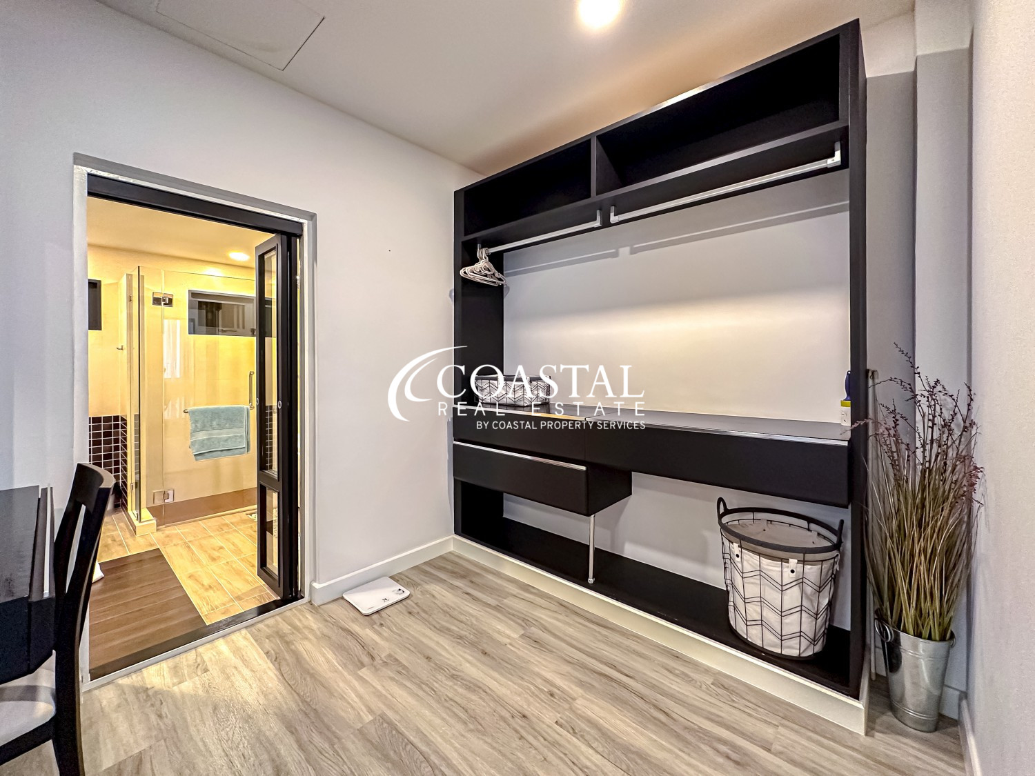 Also on the lower level are a guest bathroom and a convenient storage room. The living area opens to a large balcony, creating a seamless indoor-outdoor living experience and providing the perfect place to enjoy the tropical breeze and views of Jomtien. The smart, wireless air conditioning units allow residents to personalize their comfort right from their phones meaning the condo will always be the perfect temperature.