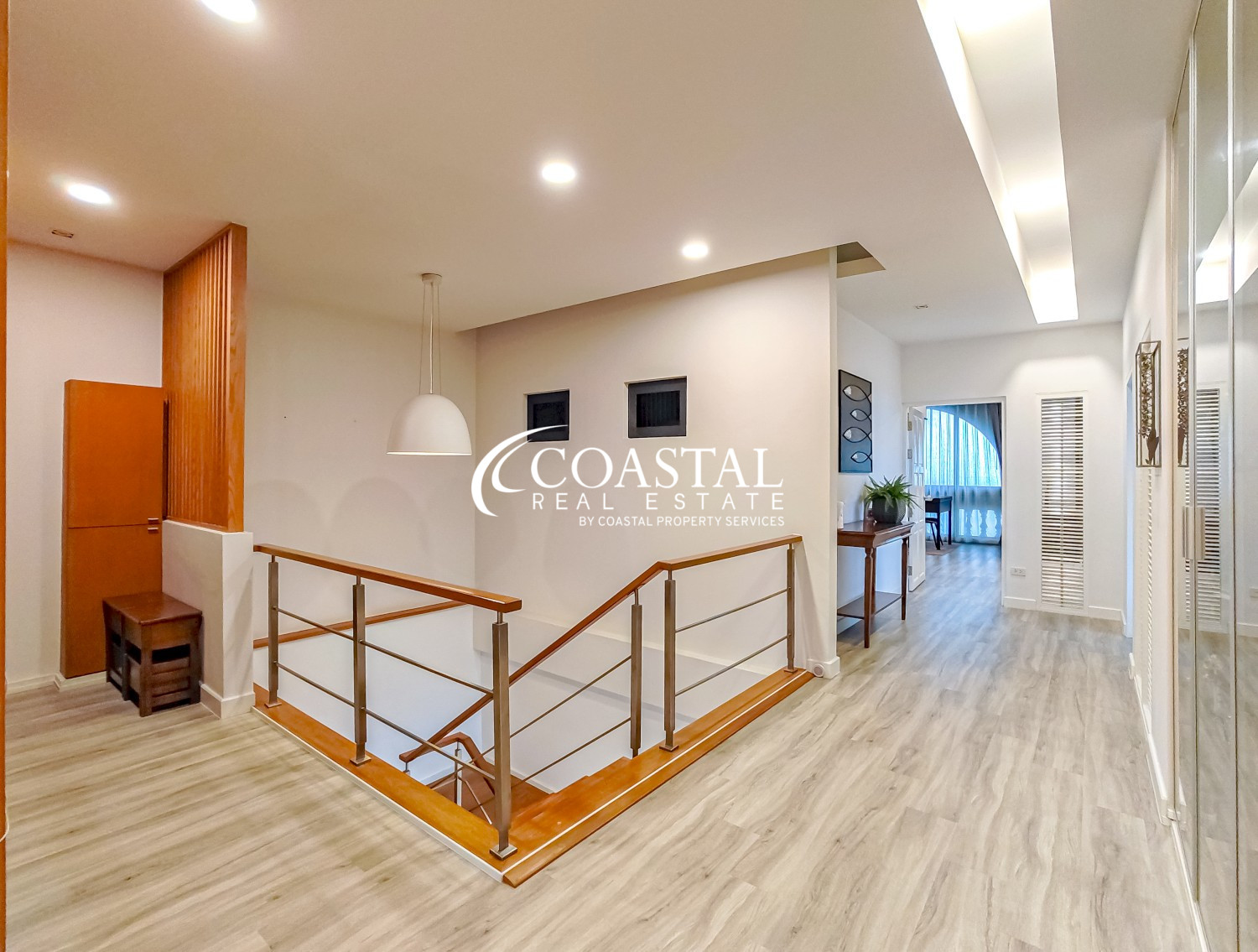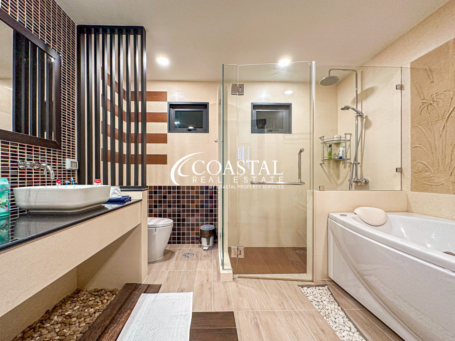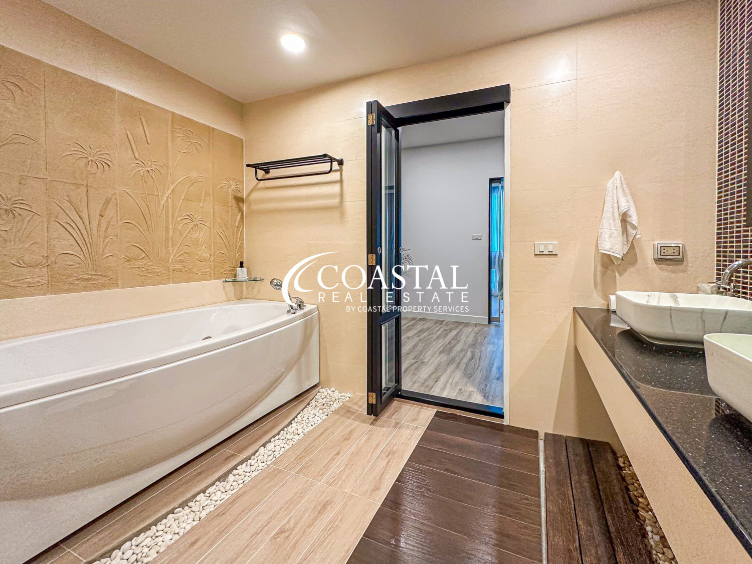 Upstairs, you’ll find the bedrooms, including a luxurious master suite complete with a comfortable sitting area, private balcony, and elegant ensuite bathroom with a full-size bathtub — ideal for unwinding after a day exploring Pattaya. One of the guest bedrooms is also ensuite with its own private balcony, while the other two bedrooms share a bathroom, and one of them enjoys another private balcony.