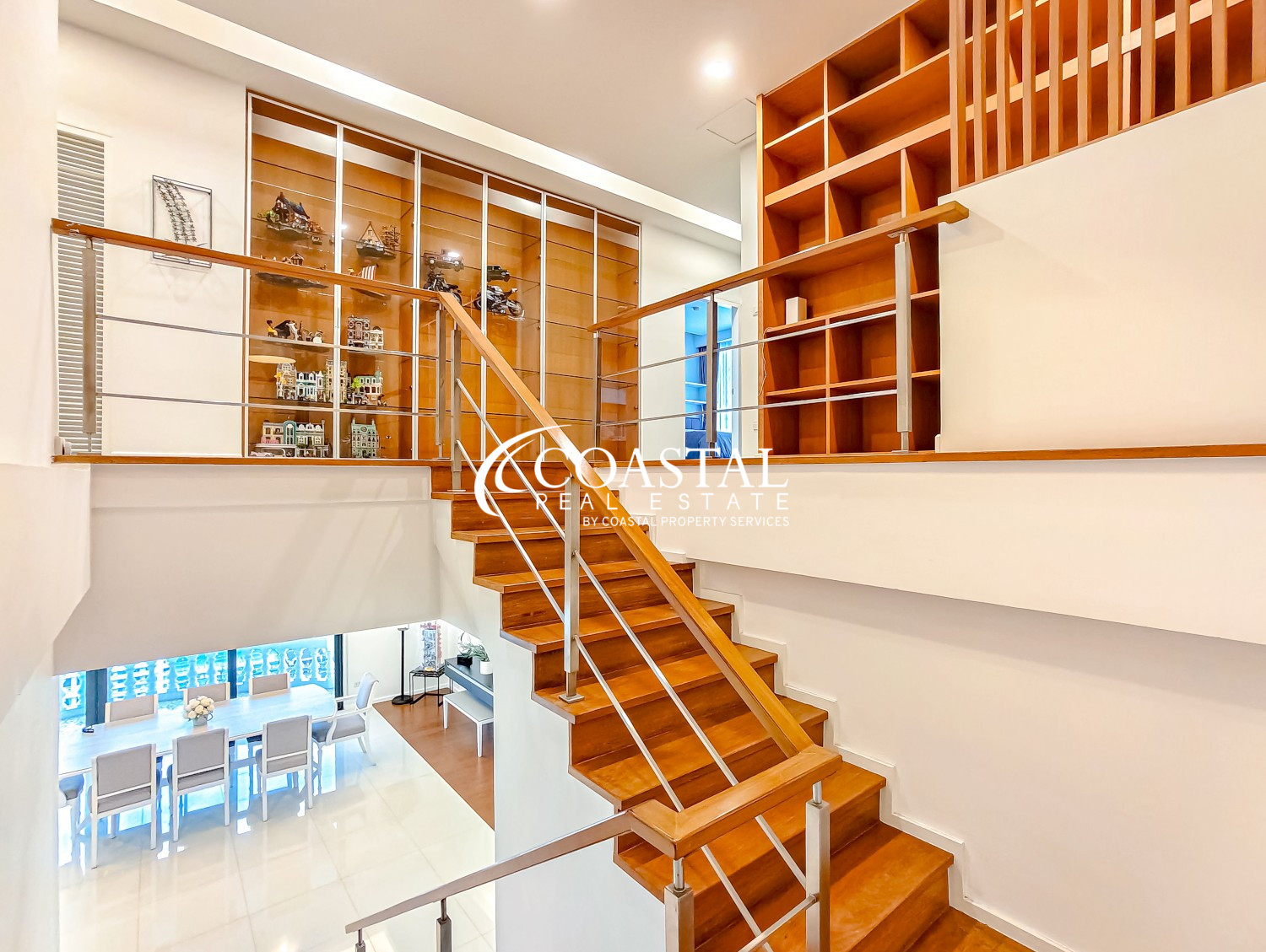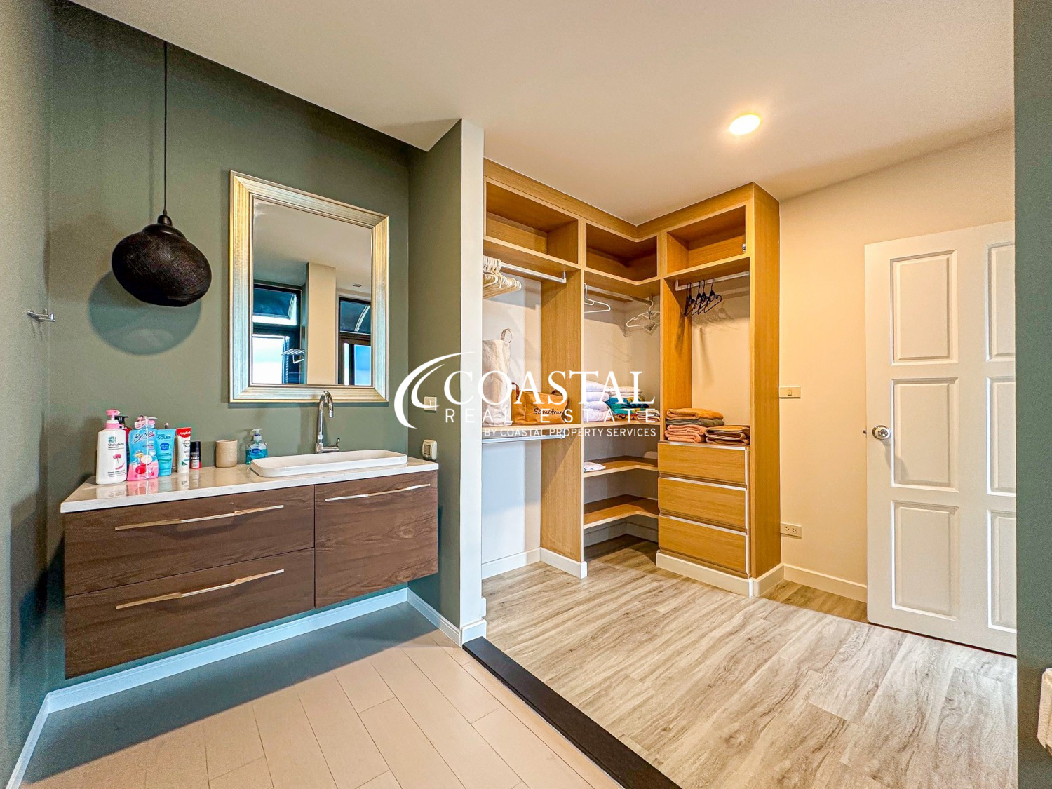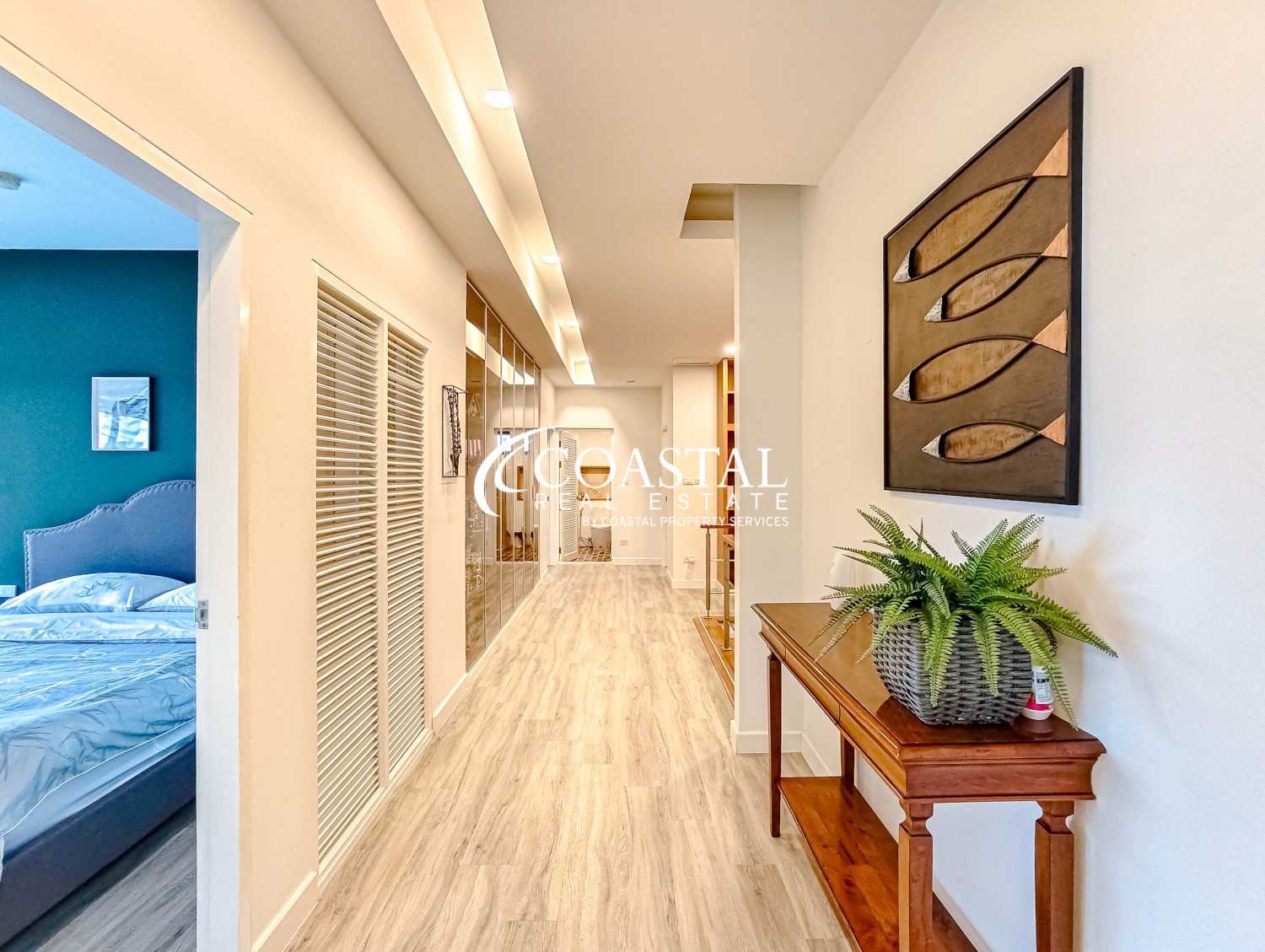 Upstairs, you’ll find the bedrooms, including a luxurious master suite complete with a comfortable sitting area, private balcony, and elegant ensuite bathroom with a full-size bathtub — ideal for unwinding after a day exploring Pattaya. One of the guest bedrooms is also ensuite with its own private balcony, while the other two bedrooms share a bathroom, and one of them enjoys another private balcony.