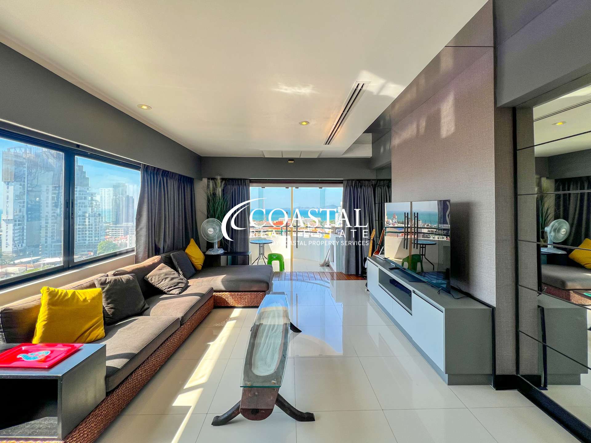 This 71.06 square meter, one bedroom, one bathroom condo for sale at Star Beach Condotel in Pratumnak offers a bright and airy living environment in a highly desirable coastal location. Positioned as a corner unit, the condo benefits from excellent natural light and a well balanced layout, with tasteful finishes and beautiful décor throughout. The spacious living area is ideal for everyday living or entertaining and enjoys impressive views over Pratumnak and out to the sea.