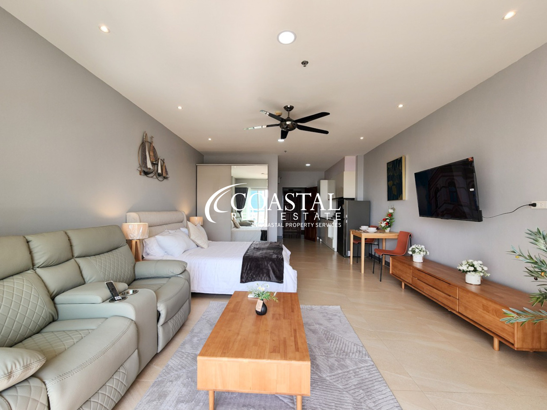 This well presented 48 square meter studio at View Talay 5D offers comfortable coastal living in one of Jomtien’s most popular beachfront developments. The unit has been nicely finished, is fully furnished, and is ready to move in or rent out immediately.