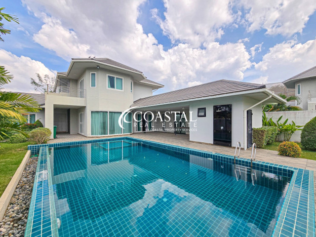 This two-story home is available for sale at the exclusive Greenfield Executive Homes in Nong Palai. Offering 310 square meters of living space, the residence is thoughtfully designed with four spacious bedrooms and five modern bathrooms, making it ideal for family living or those who enjoy entertaining guests.