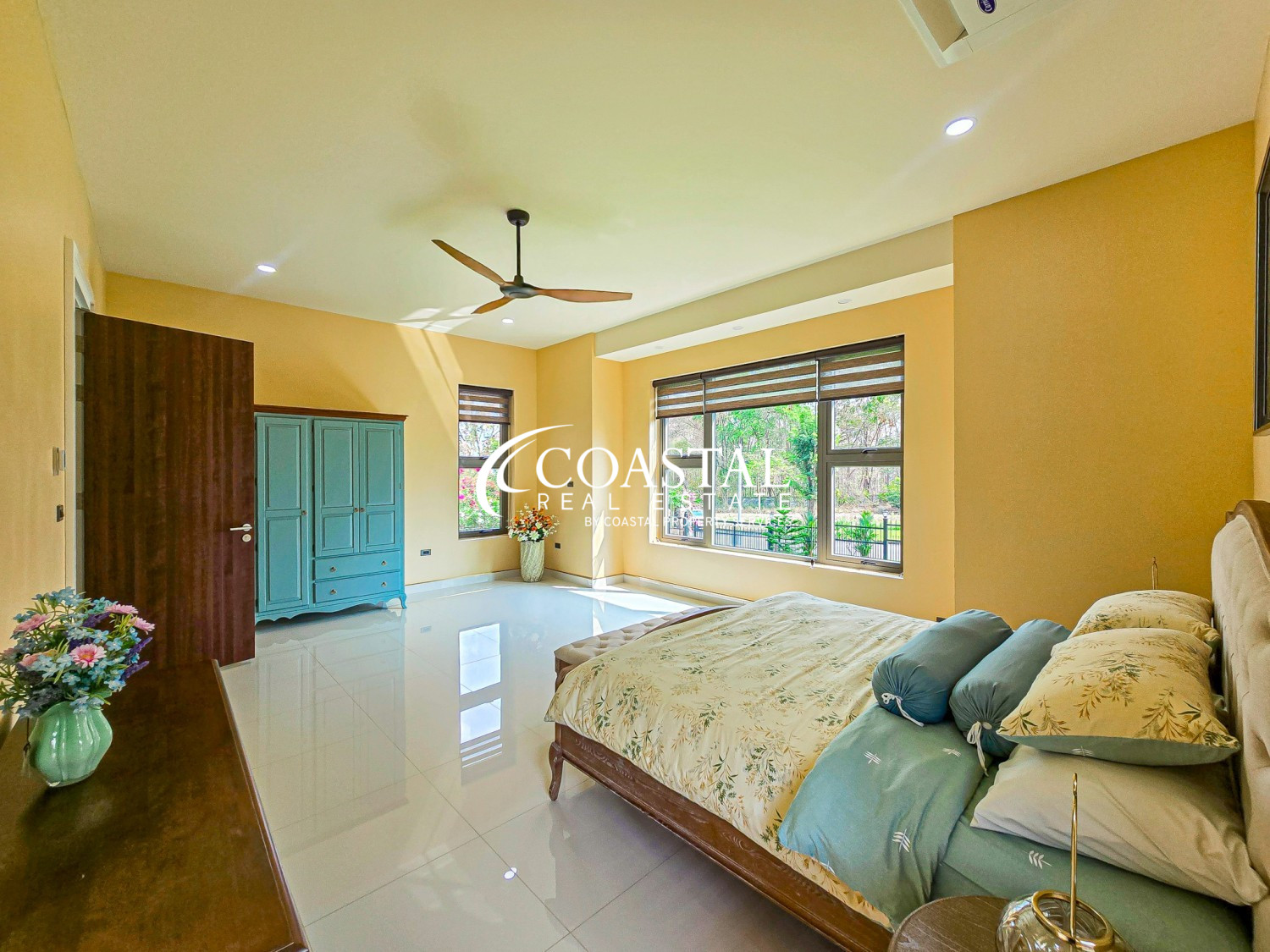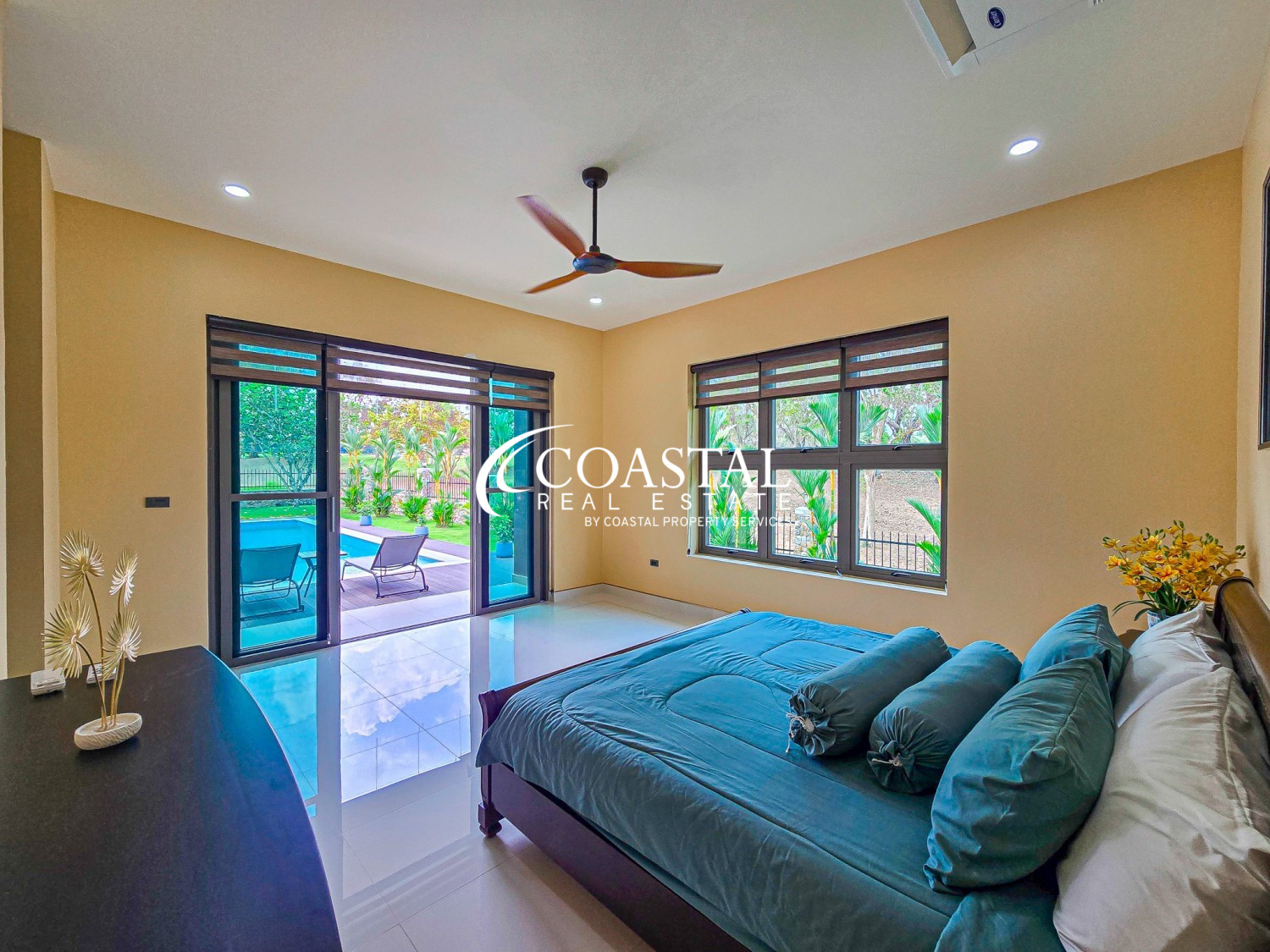 The en-suite master bedroom exudes luxury, featuring a large built-in wardrobe, a lavish bathtub, and a separate shower area. Adding to its allure, a guesthouse offers 2 bedrooms, 1 bathroom, a Thai kitchen, and a storage room.