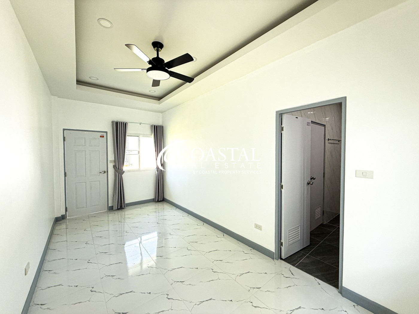 Impress House in East Pattaya is a well maintained residential village designed to offer privacy, comfort, and convenience for its residents. The development features a communal swimming pool, fitness center, and landscaped common areas that provide a pleasant space to relax or stay active. Security is a key focus, with gated access and 24 hour security giving residents peace of mind. The village roads are wide and neatly kept, creating a clean and organized environment that suits both families and long term residents.