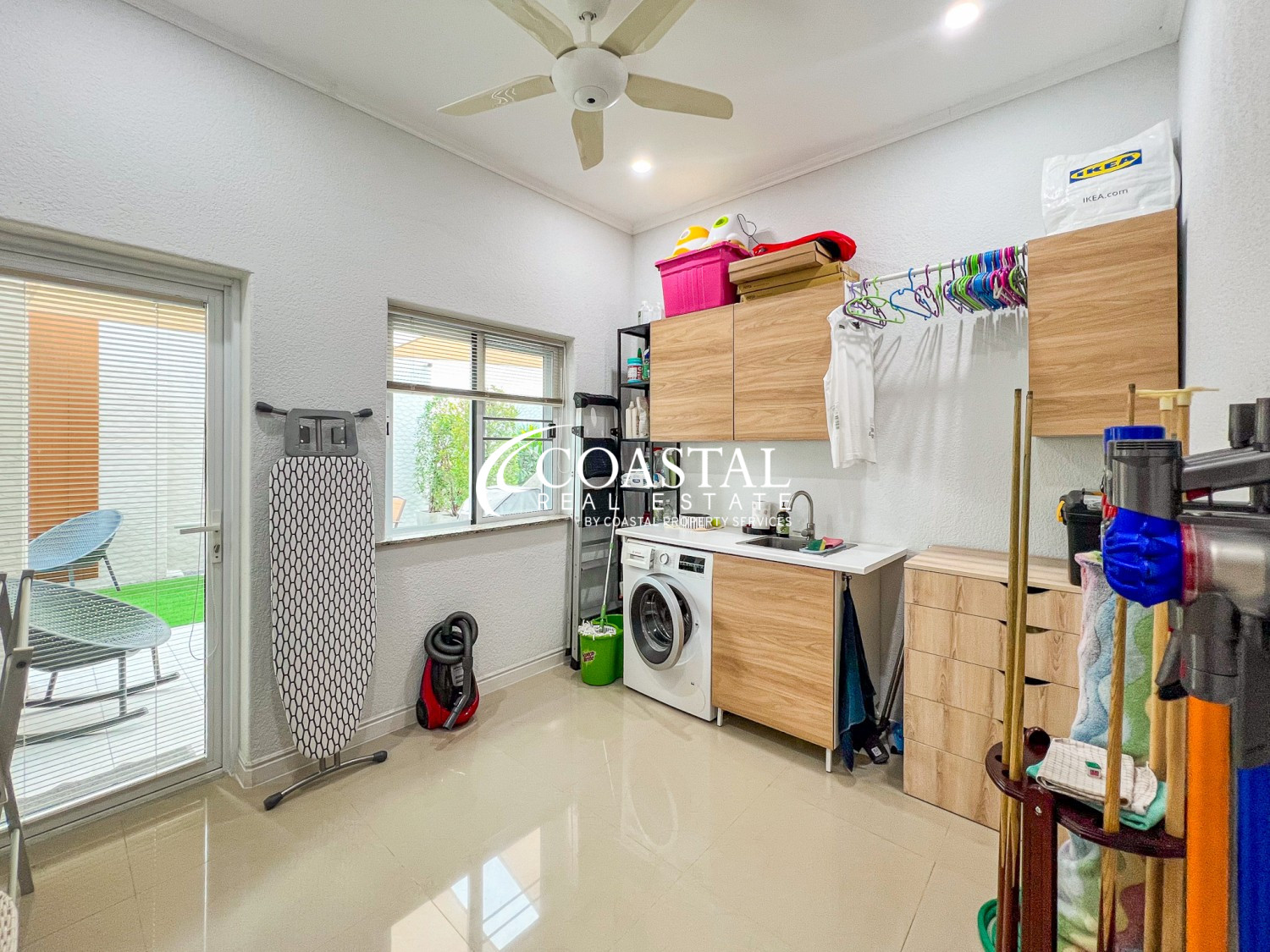 The European-style kitchen is fully equipped with an oven and quality appliances, perfect for those who enjoy cooking and entertaining, while a separate laundry room with a washing machine and dishwasher adds everyday practicality. The house is fully furnished, allowing for an easy move-in experience.