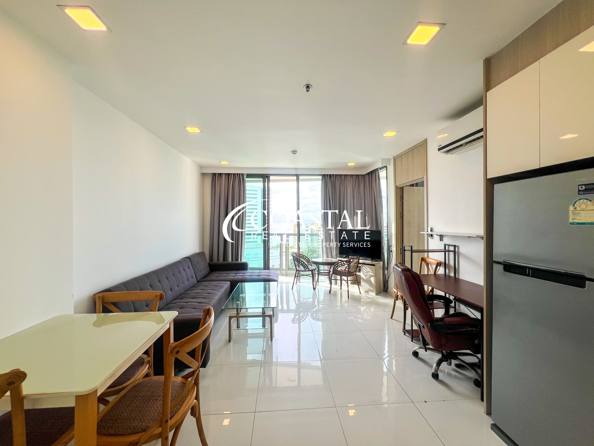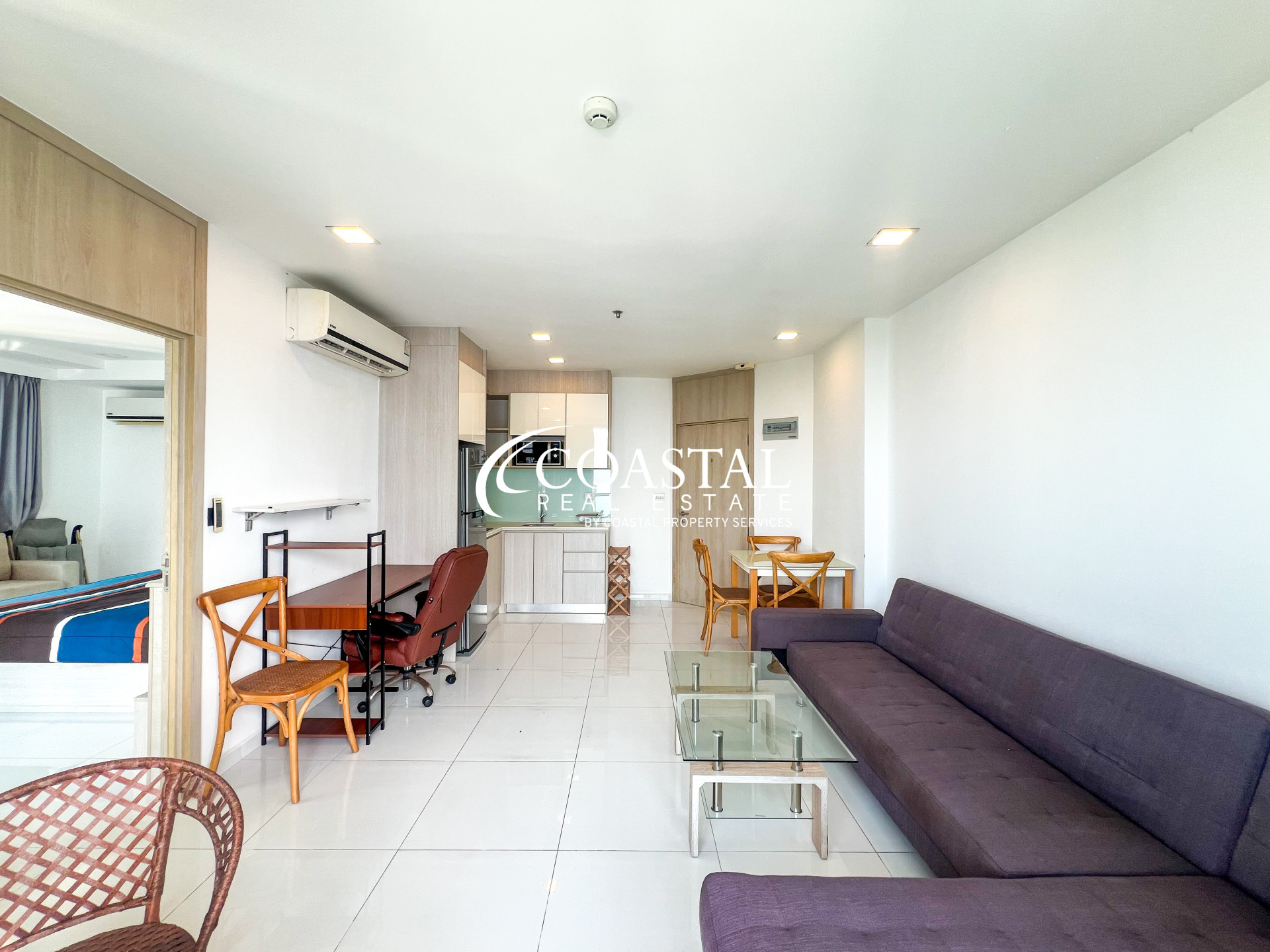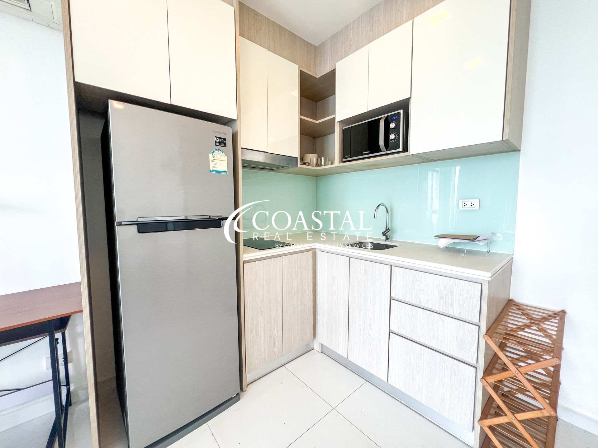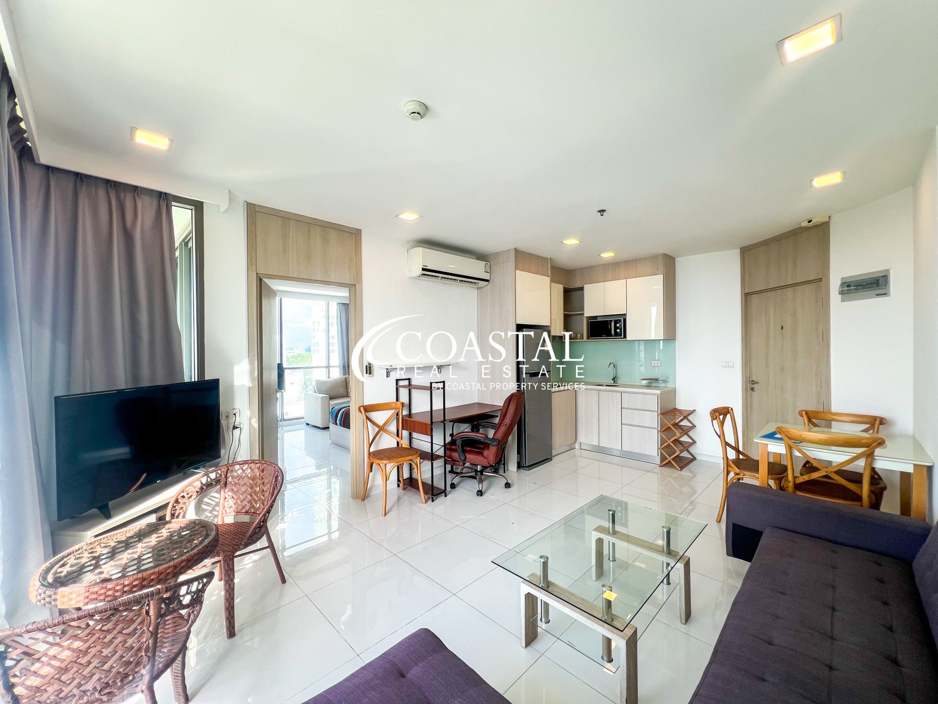 คอนโดขนาด 55.06 ตารางเมตร 1 ห้องนอน 1ห้องน้ำ เฟอร์นิเจอร์ครบครัน ครัวสไตล์ยุโรป และมีระเบียงส่วนตัวสำหรับพักผ่อนพร้อมวิวทะเล