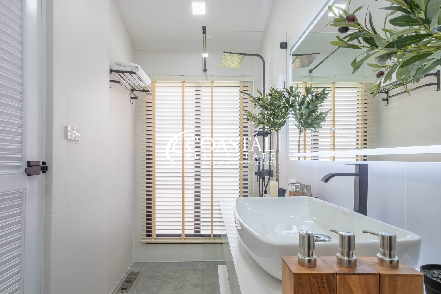 บ้านเดี่ยวสุดหรูสำหรับขายที่ศรีสุข วิลล่า ในพัทยาตะวันออก มีพื้นที่กว้างขวางถึง 220 ตารางเมตร บนที่ดินขนาด 106.5 ตารางวา ได้รับการออกแบบอย่างพิถีพิถันเพื่อความสะดวกสบายและประโยชน์ใช้สอย ประกอบด้วยห้องนอนกว้างขวาง 5 ห้อง และห้องน้ำ 6 ห้อง มีพื้นที่กว้างขวางสำหรับครอบครัวหรือรองรับแขก