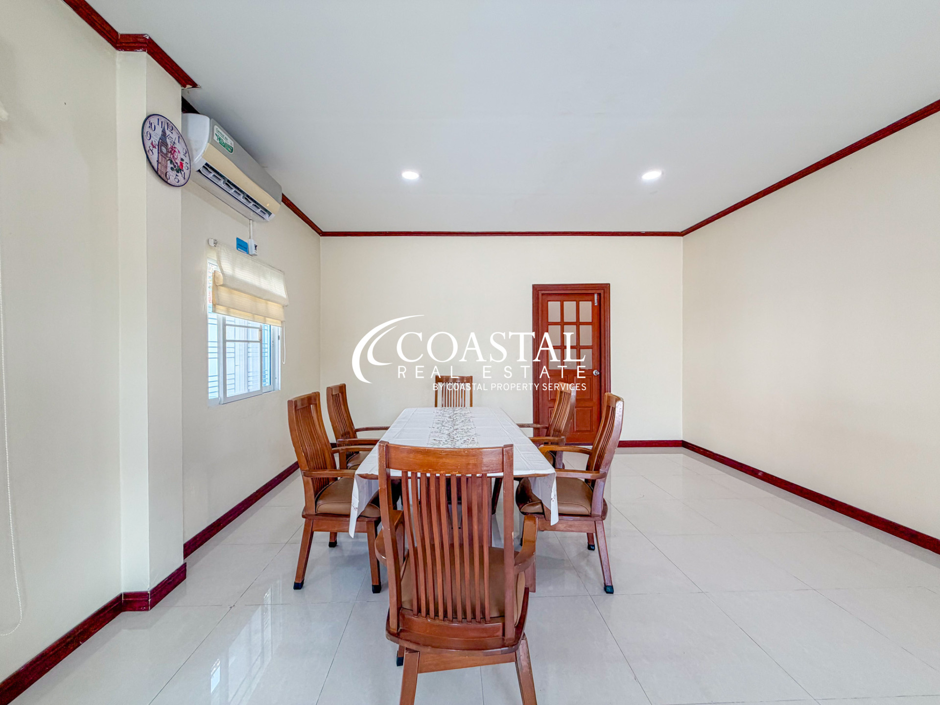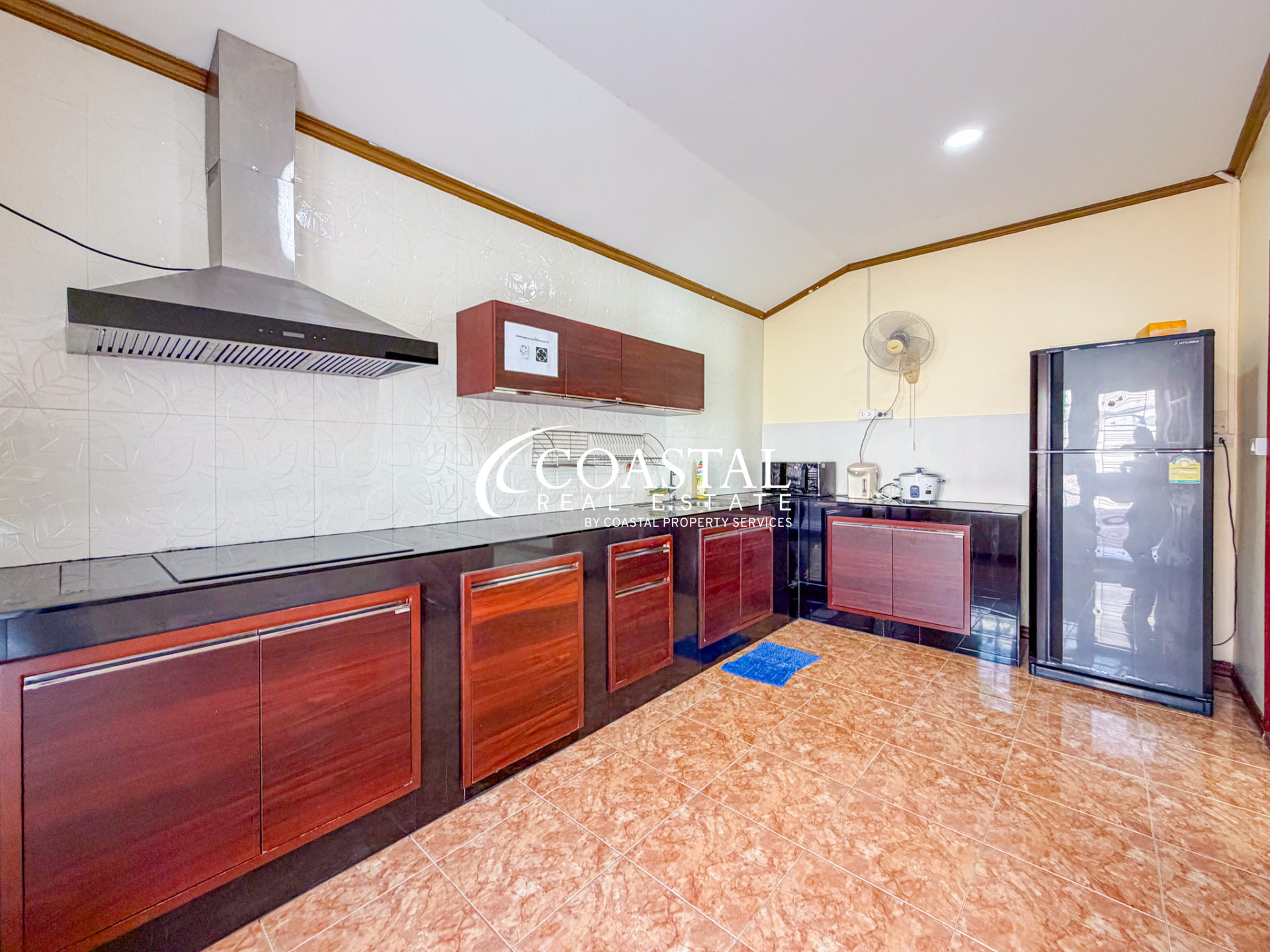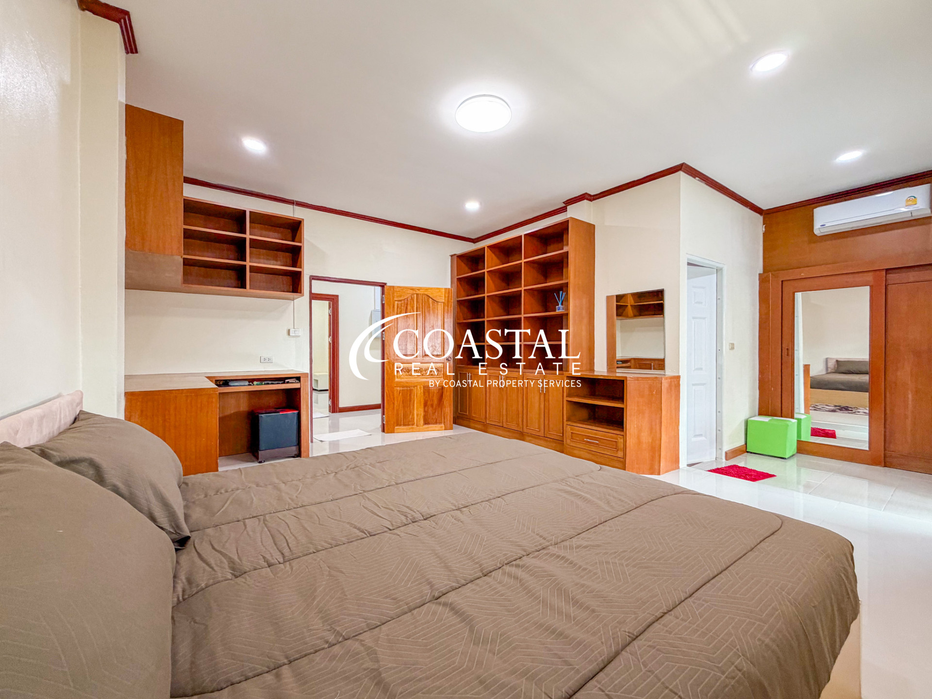 บ้านเดี่ยวหลังใหญ่ให้เช่าในพัทยาตะวันออกหลังนี้ มอบความสะดวกสบายในการอยู่อาศัยในบรรยากาศเงียบสงบ เหมาะสำหรับครอบครัวหรือผู้ที่มองหาพื้นที่ใช้สอยทั้งภายในและภายนอกบ้านอย่างกว้างขวาง บ้านหลังนี้มีห้องนอนขนาดใหญ่ 4 ห้อง และห้องน้ำ 4 ห้อง ให้ความเป็นส่วนตัวและความสะดวกสบายแก่ผู้อยู่อาศัยและแขก ภายในบ้านตกแต่งครบครันด้วยเฟอร์นิเจอร์ที่สวยงาม เข้ากับผังบ้านที่โปร่งโล่ง