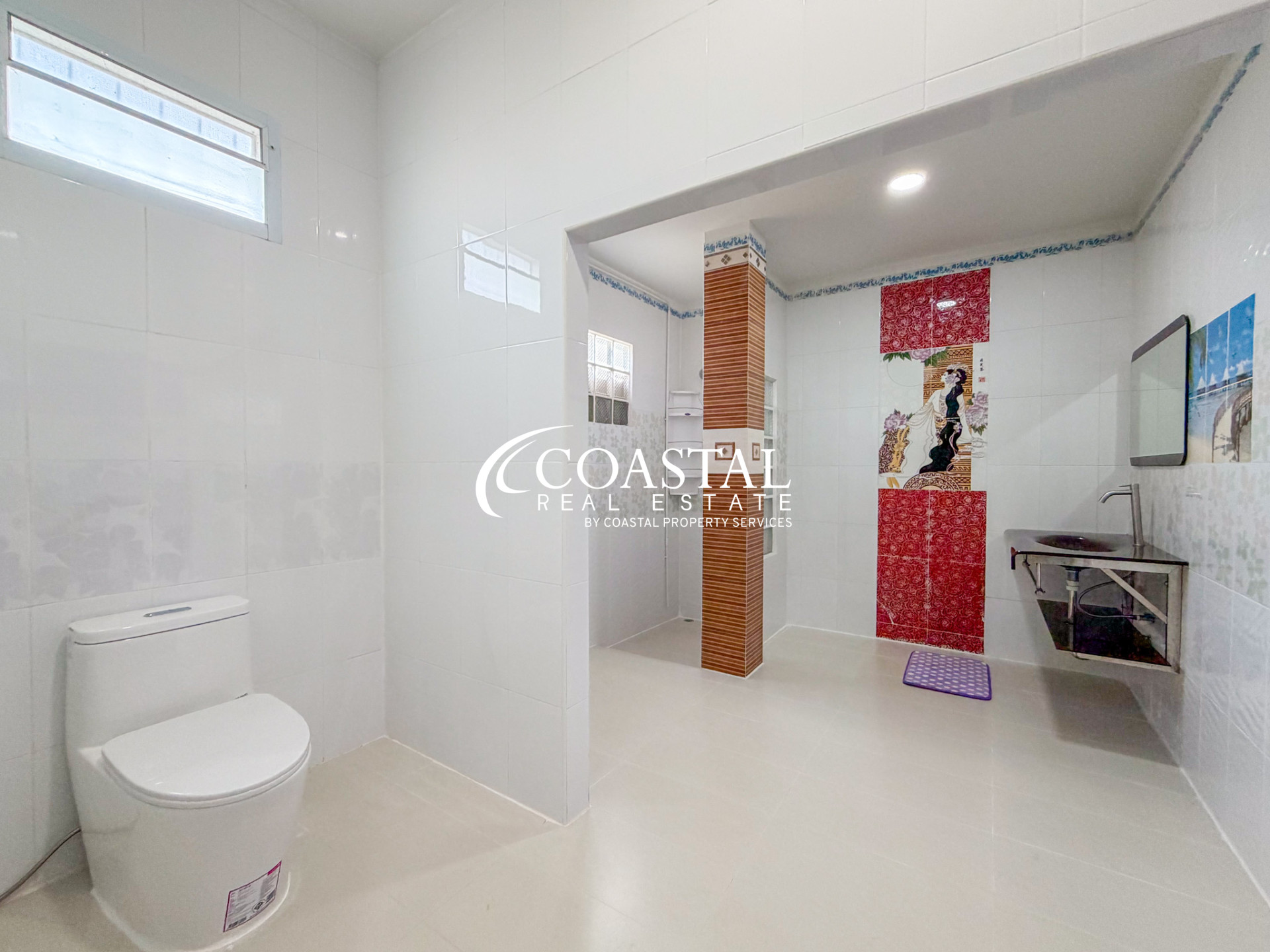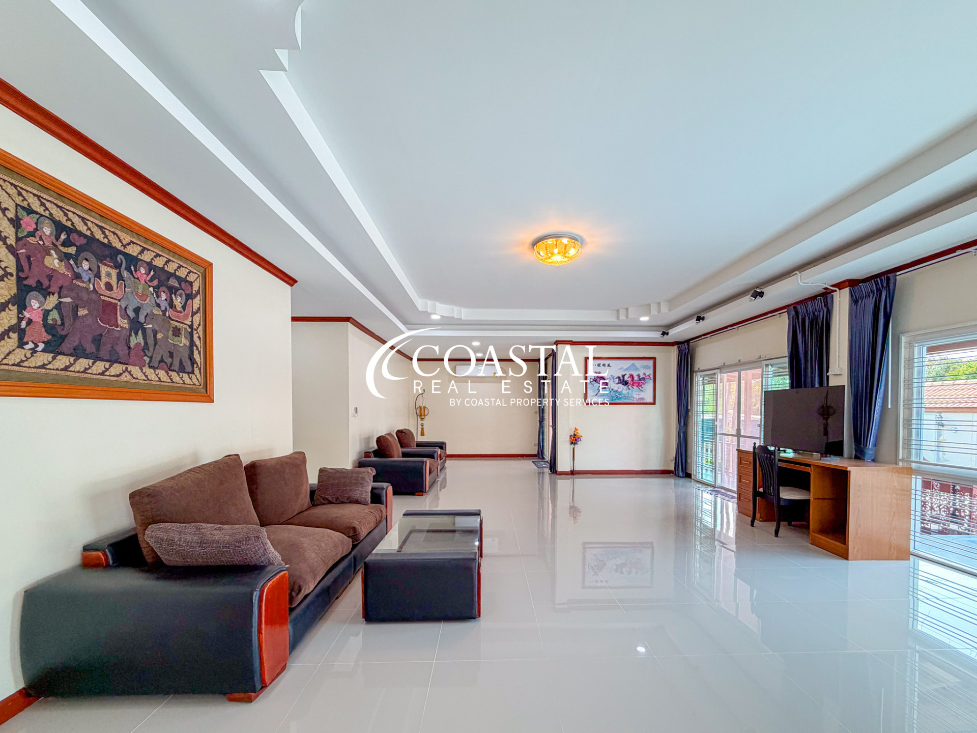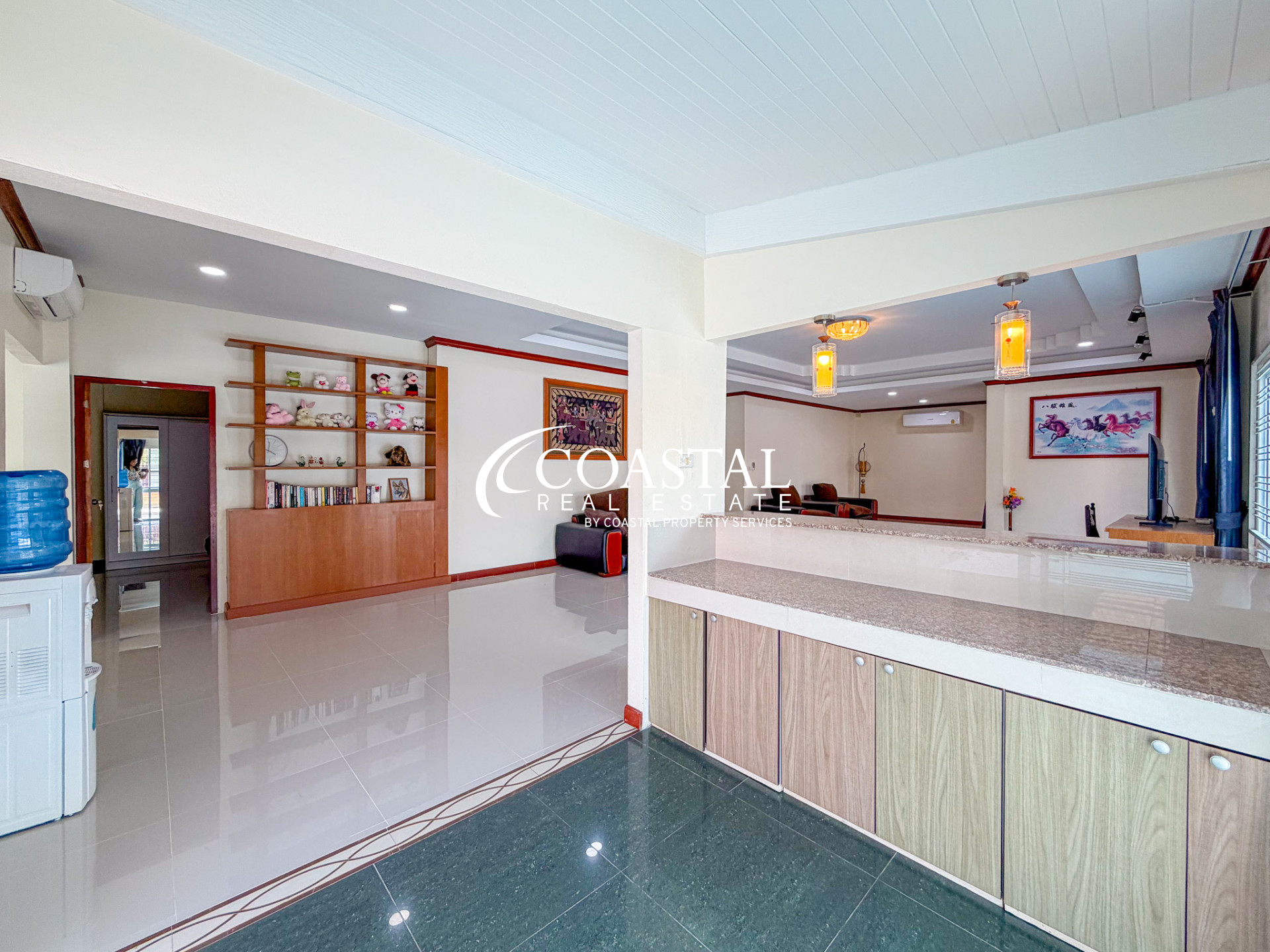 บ้านเดี่ยวหลังใหญ่ให้เช่าในพัทยาตะวันออกหลังนี้ มอบความสะดวกสบายในการอยู่อาศัยในบรรยากาศเงียบสงบ เหมาะสำหรับครอบครัวหรือผู้ที่มองหาพื้นที่ใช้สอยทั้งภายในและภายนอกบ้านอย่างกว้างขวาง บ้านหลังนี้มีห้องนอนขนาดใหญ่ 4 ห้อง และห้องน้ำ 4 ห้อง ให้ความเป็นส่วนตัวและความสะดวกสบายแก่ผู้อยู่อาศัยและแขก ภายในบ้านตกแต่งครบครันด้วยเฟอร์นิเจอร์ที่สวยงาม เข้ากับผังบ้านที่โปร่งโล่ง