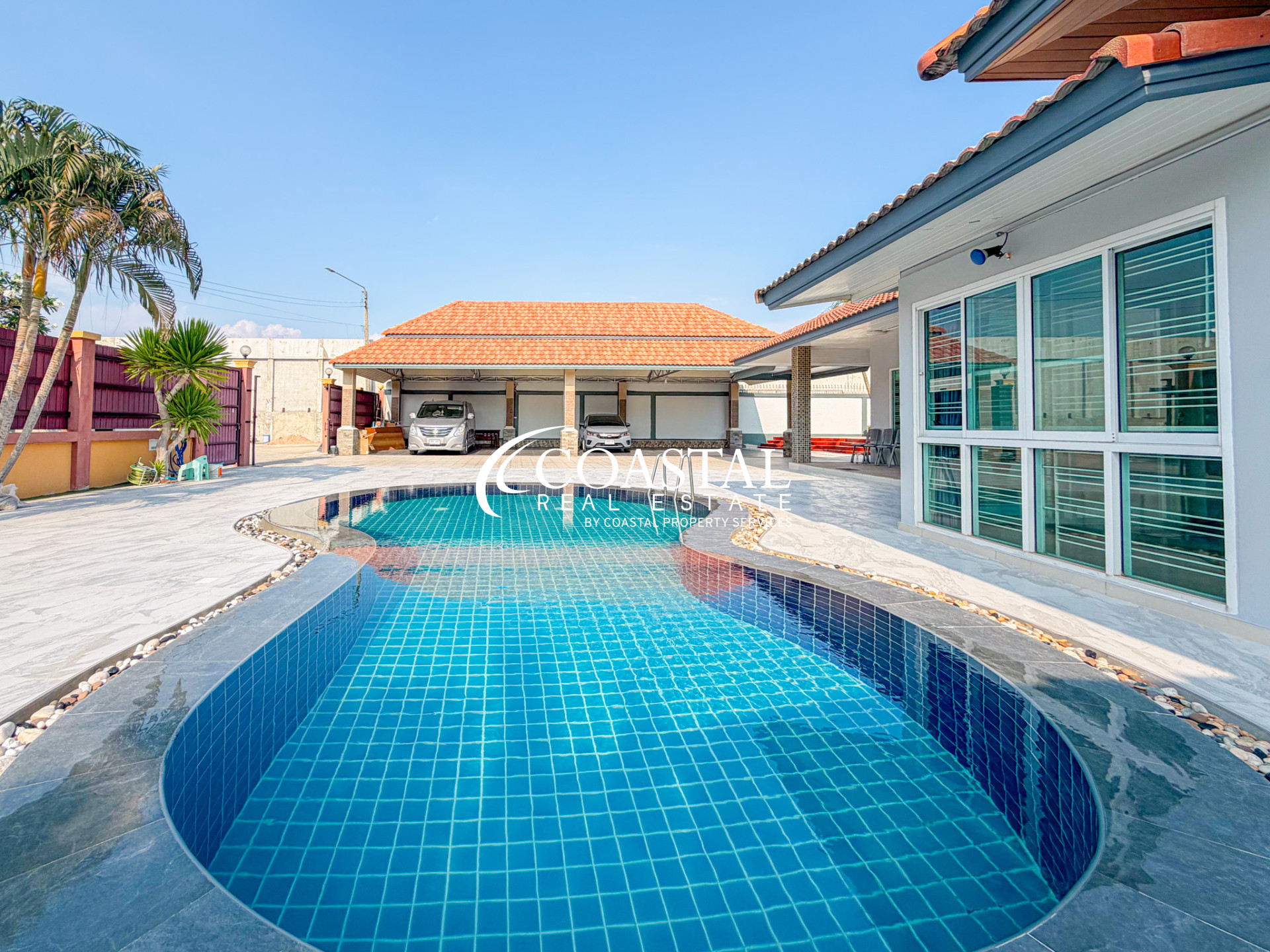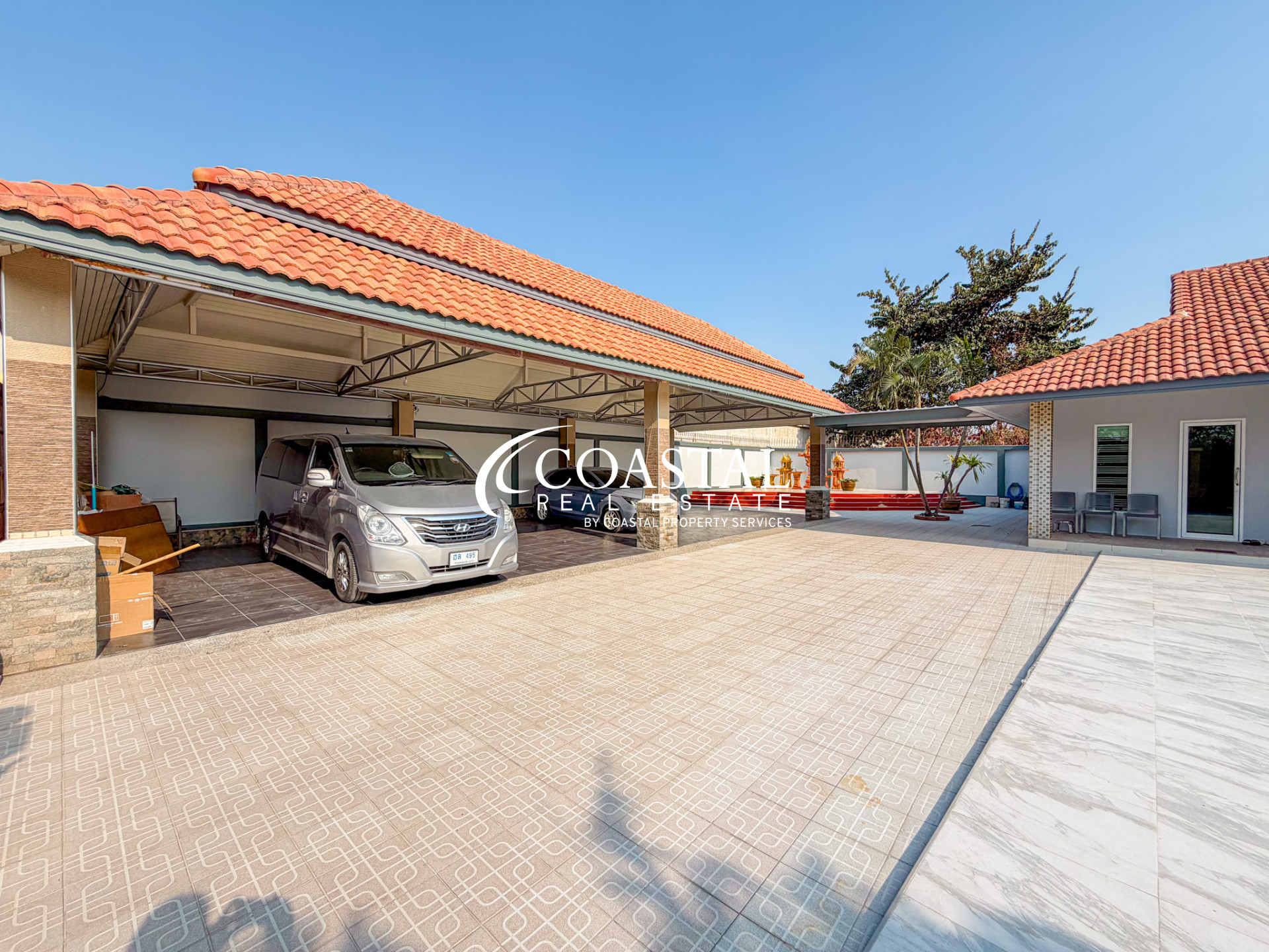 สนามหญ้ากว้างขวางและการออกแบบภายนอกที่วางแผนมาอย่างดี มอบทั้งประโยชน์ใช้สอยและความสะดวกสบาย สร้างสภาพแวดล้อมที่เป็นส่วนตัวและน่ารื่นรมย์สำหรับผู้อยู่อาศัย ตั้งอยู่ในพัทยาตะวันออก บ้านหลังนี้จึงเข้าถึงสิ่งอำนวยความสะดวกในท้องถิ่น โรงเรียนนานาชาติ สนามกอล์ฟ ร้านอาหาร และใจกลางเมืองได้อย่างง่ายดาย ทำให้เป็นสถานที่อยู่อาศัยที่สะดวกสบายและเงียบสงบ